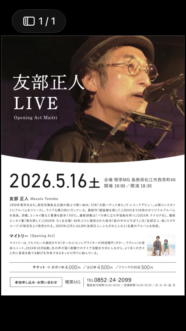 ★7月6日の毎日新聞しまね版に浜田真理子さんがMGのことを書いてくださいました